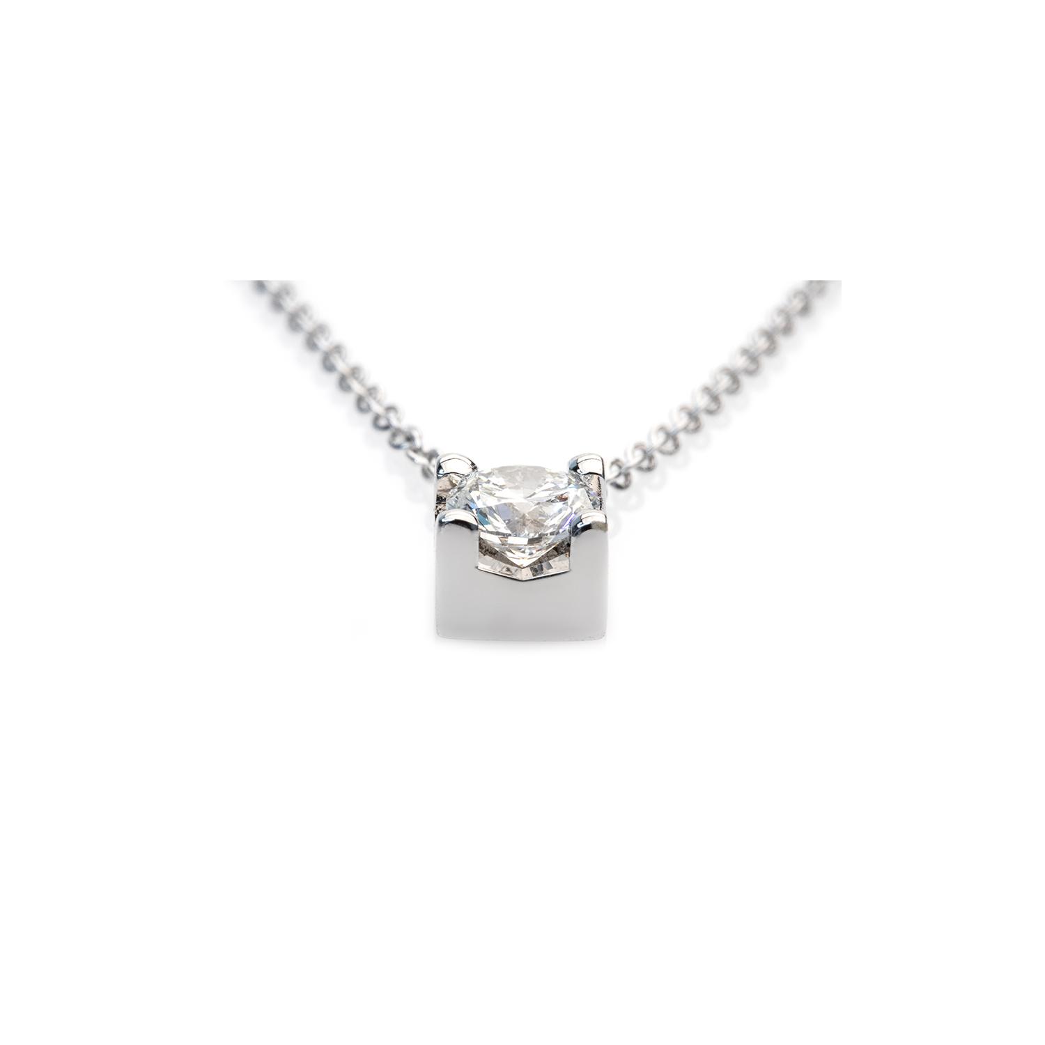 18 kt white gold pendant with 0.14 ct square light point, colour E, purity VS.