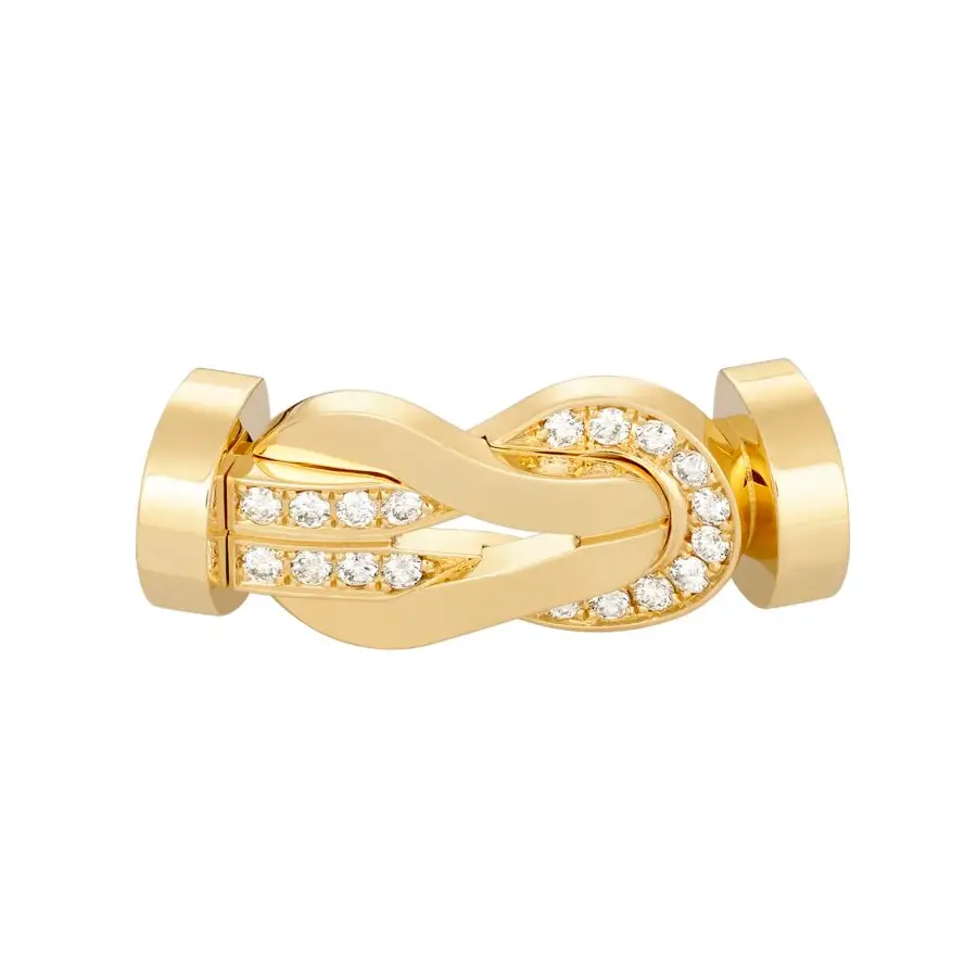 Large model clasp in 18kt gold with 18 brilliant-cut white diamonds.
