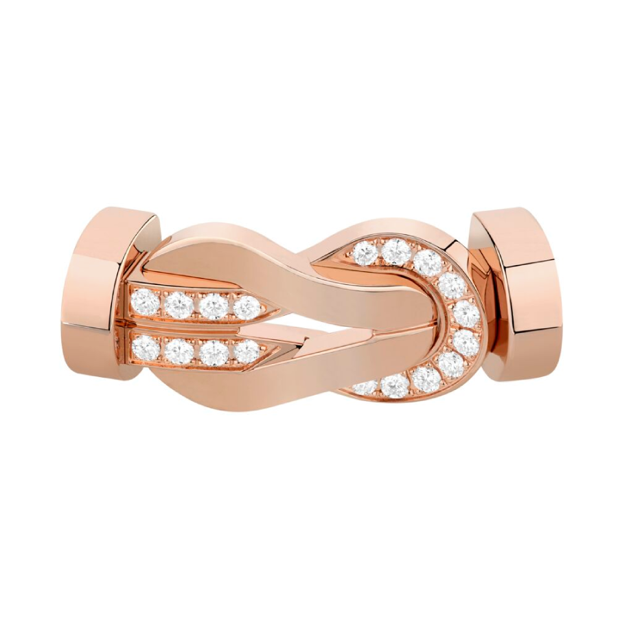 Large model clasp in 18kt rose gold with 18 brilliant-cut white diamonds.