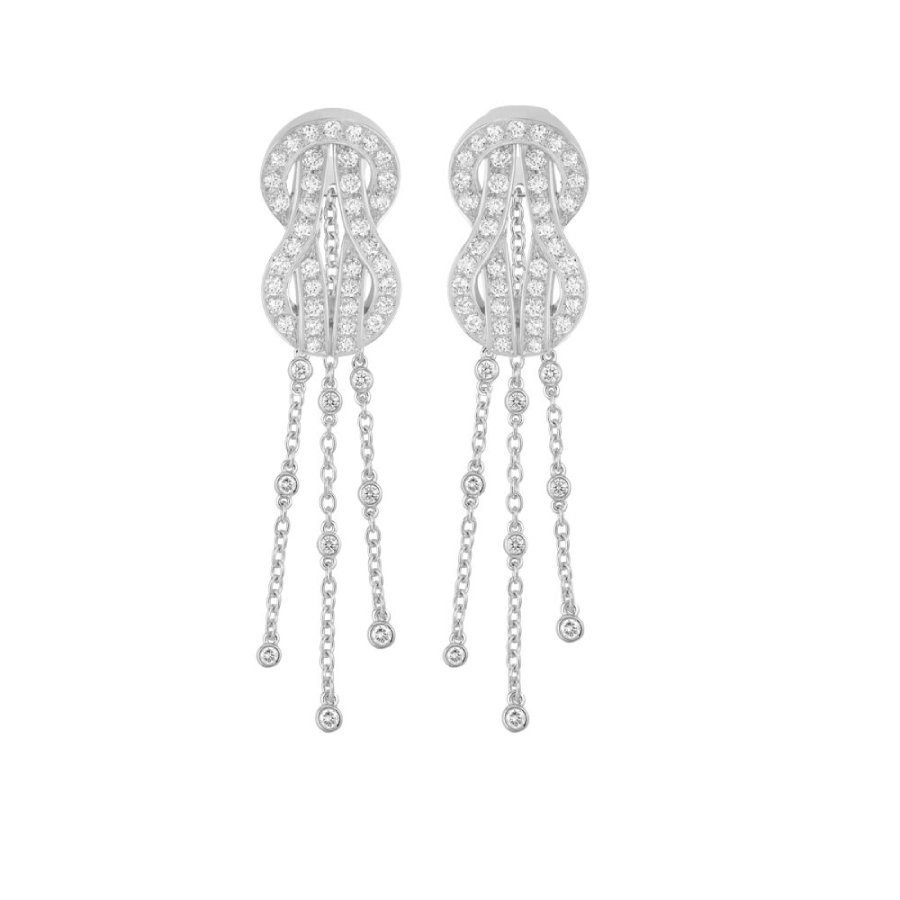 Medium model earrings in white gold with 78 brilliant-cut white diamonds.