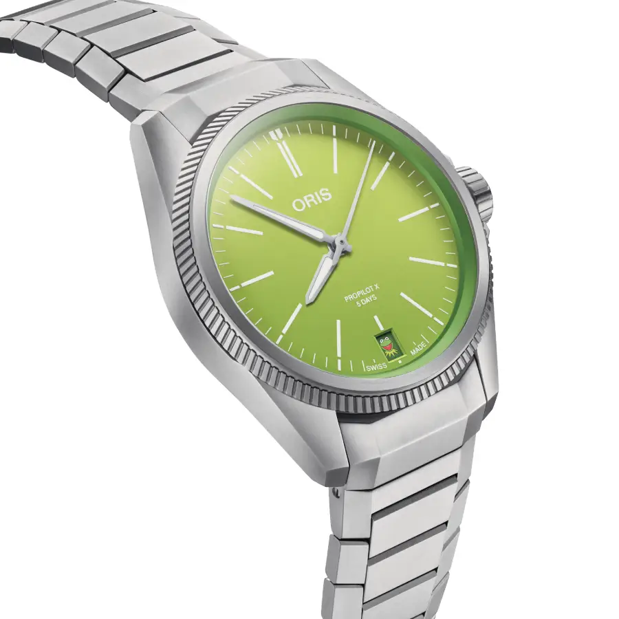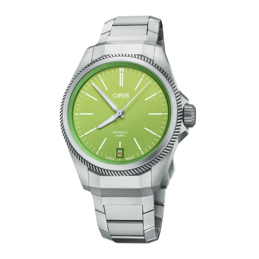 It was created in collaboration with our friend and inspiration Kermit the Frog from Disney. Every first of the month, Kermit appears in the date window, reminding you to take some time for yourself. In addition to its cheerful appearance, it is a high-performance titanium ProPilot X, powered by our Caliber 400.