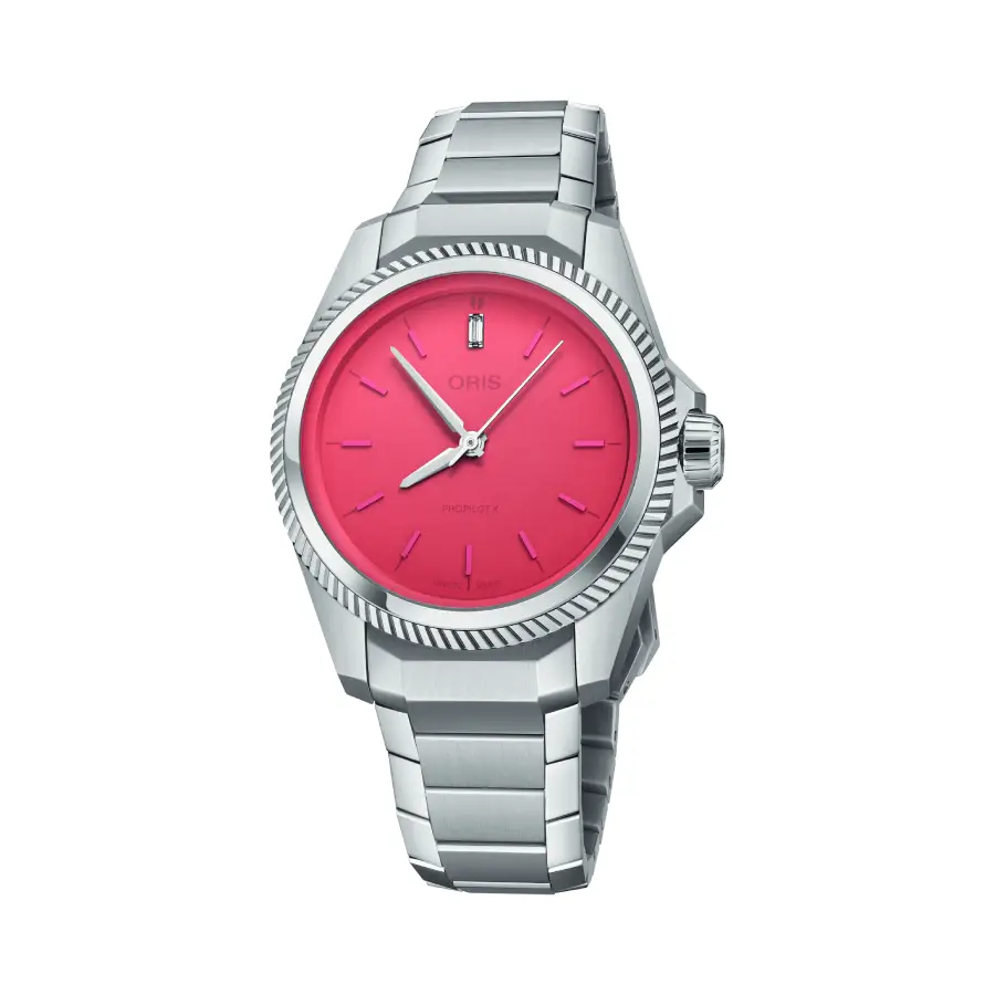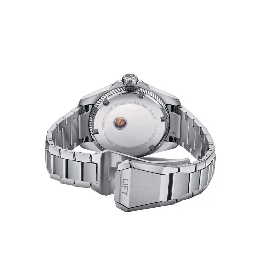 This watch is part of the Muppet collaboration: the ProPilot X Miss Piggy Edition. It features a 34mm case, a bright pink dial, and a 12-inch baguette-cut synthetic diamond. On the caseback, a porthole reveals the fascinating portrait of Miss Piggy. It is a watch that celebrates Miss Piggy’s unmistakable style and embodies her bold, decisive and confident personality.