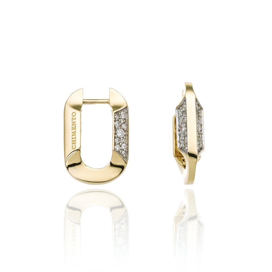 Orecchini Link Sunrise in oro giallo 18kt e pavè di diamanti bianchi.