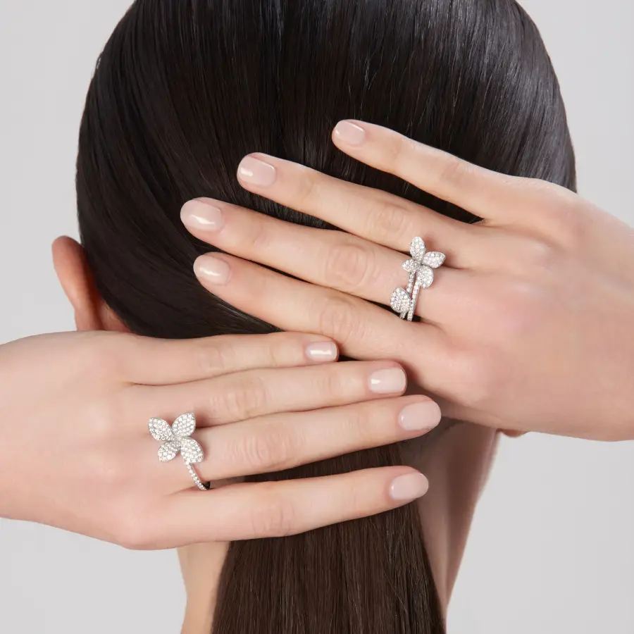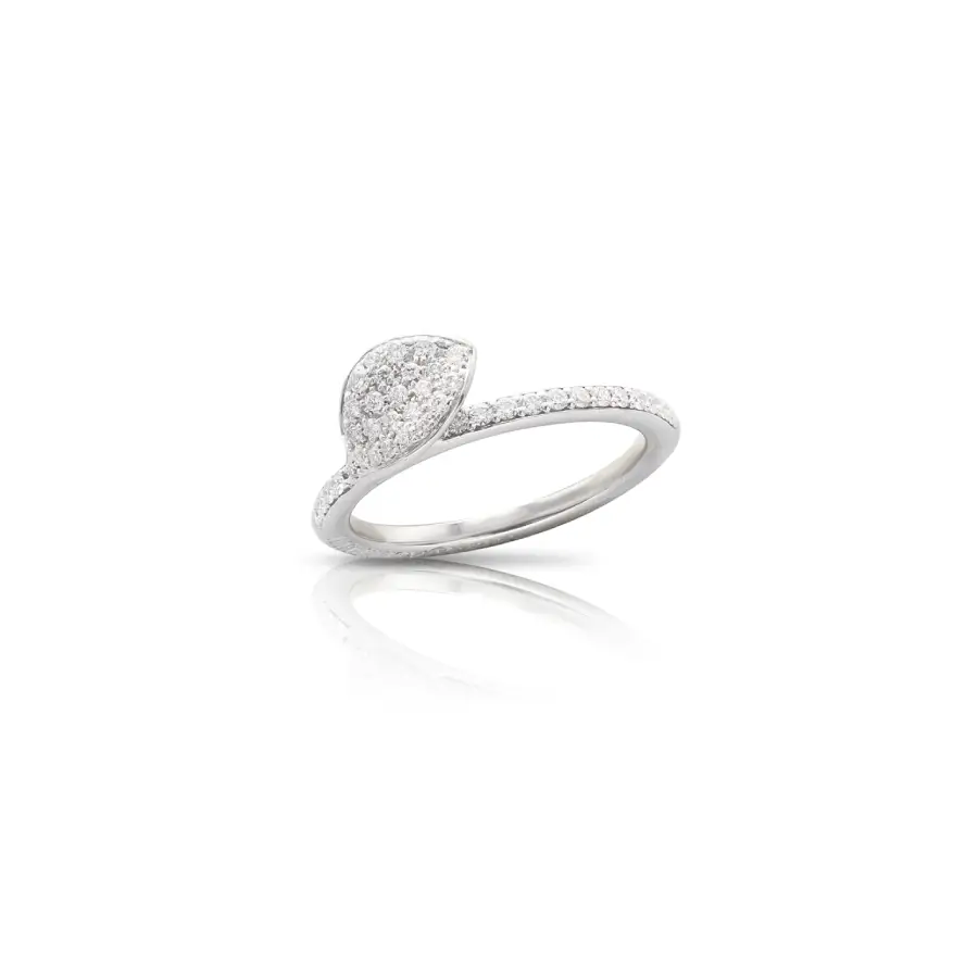 Anello Petit Garden in Oro Bianco 18 ct. con Diamanti Bianchi, Foglia Singola.