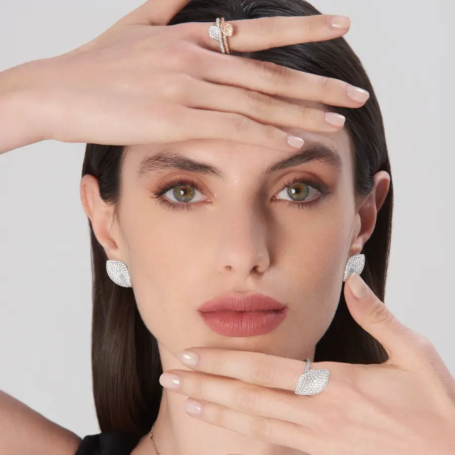 Anello Petit Garden in Oro Rosa 18 ct. con Diamanti Bianchi e Champagne, Foglia Singola.