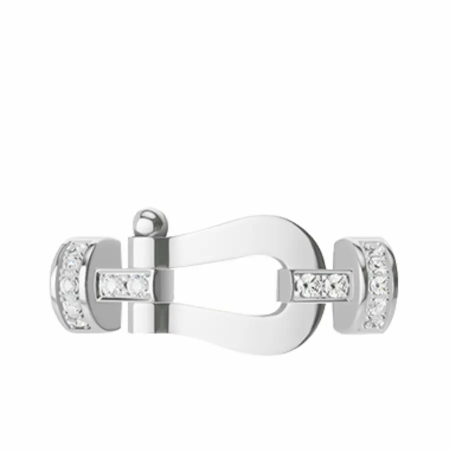 Moschettone modello medio in oro bianco 18kt con 14 diamanti bianchi taglio brillante.