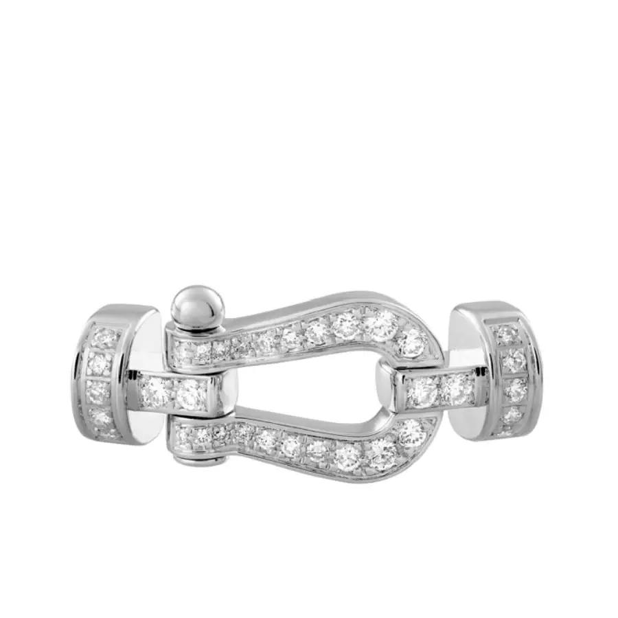 Moschettone modello medio in oro bianco 18kt con 34 diamanti bianchi taglio brillante.