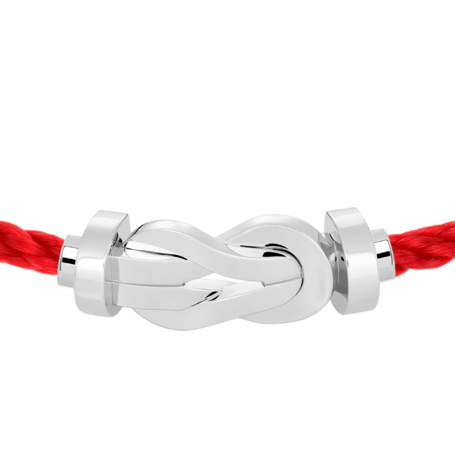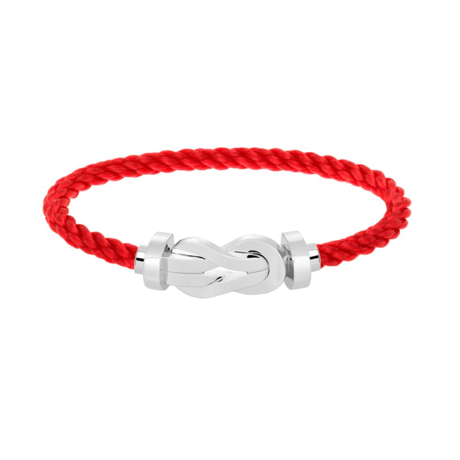 Cordino modello grande in nylon rosso con estremità in oro bianco.