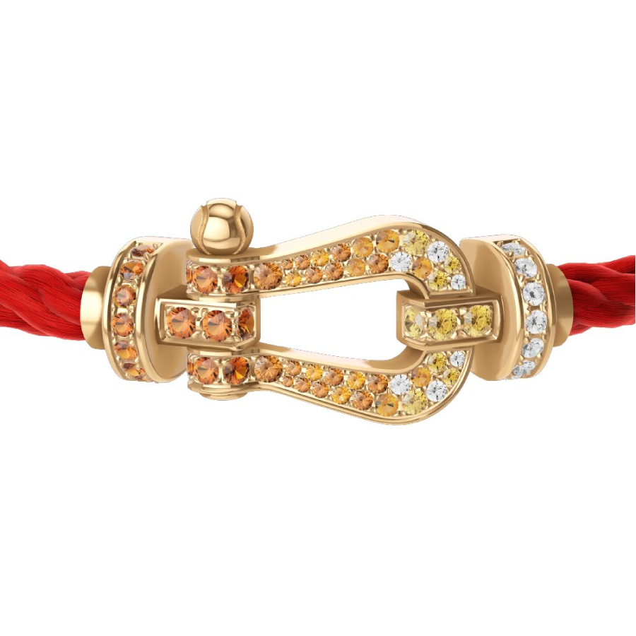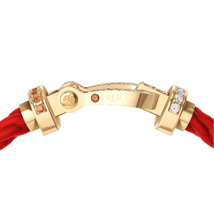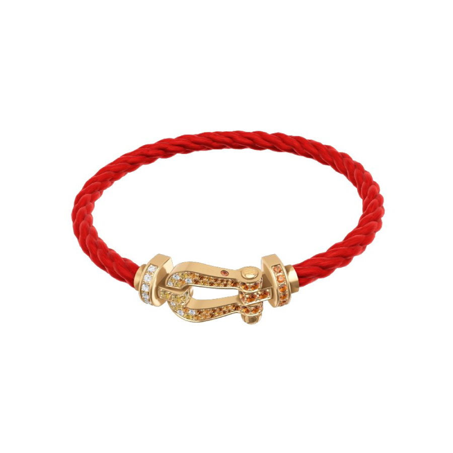 Cordino modello grande in nylon rosso con estremità in oro giallo.
