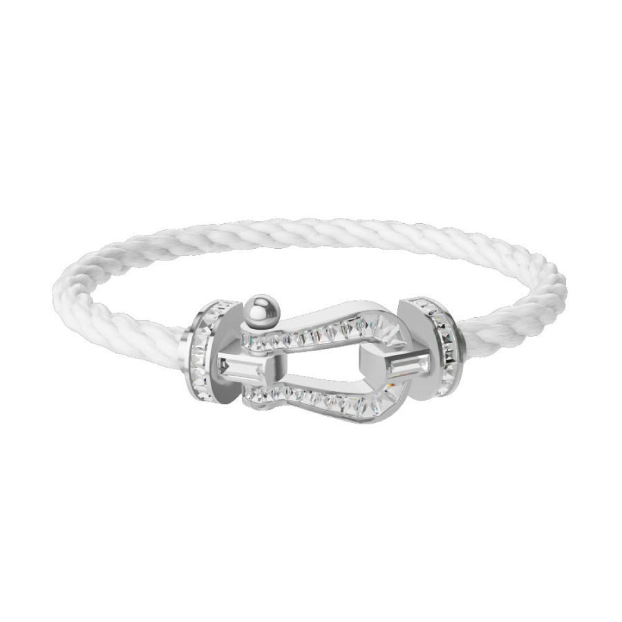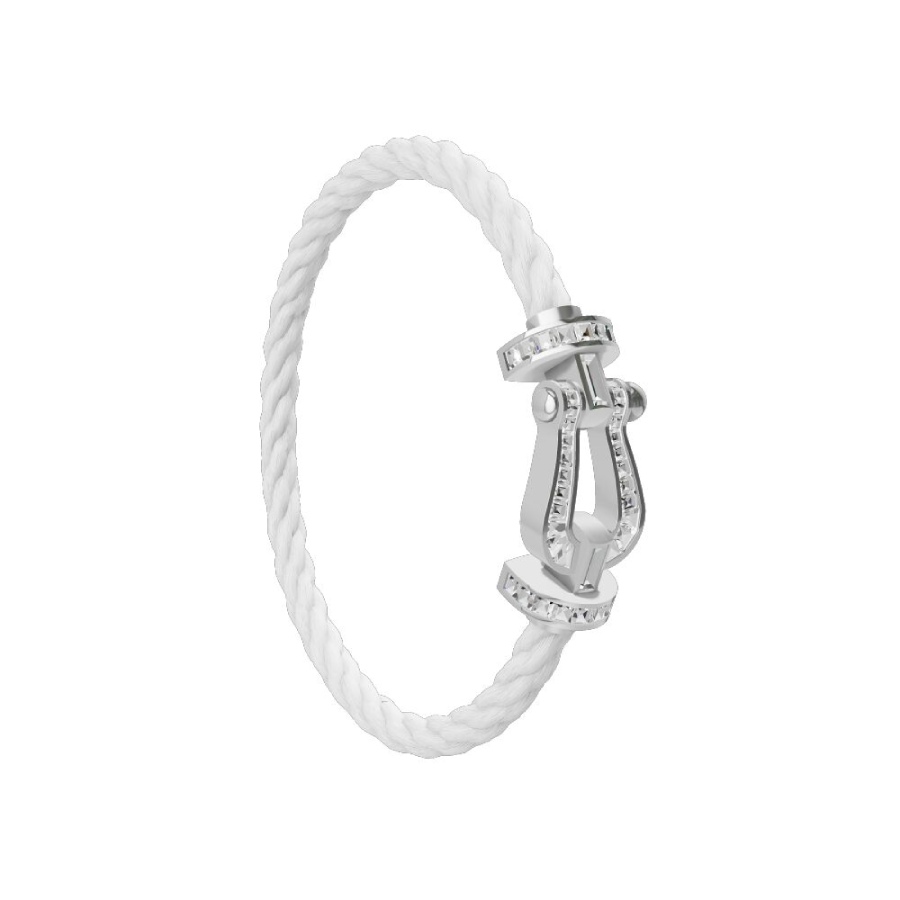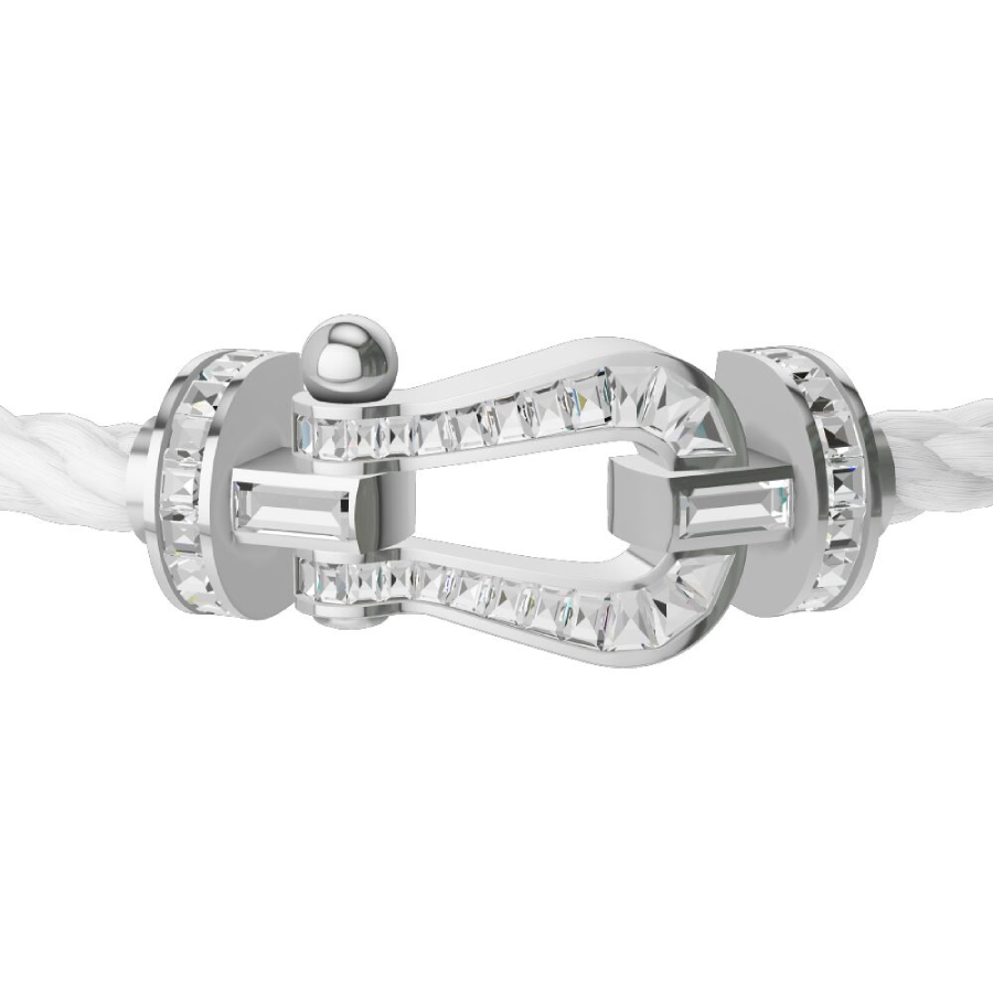 Cordino modello grande in nylon bianco con estremità in oro bianco.