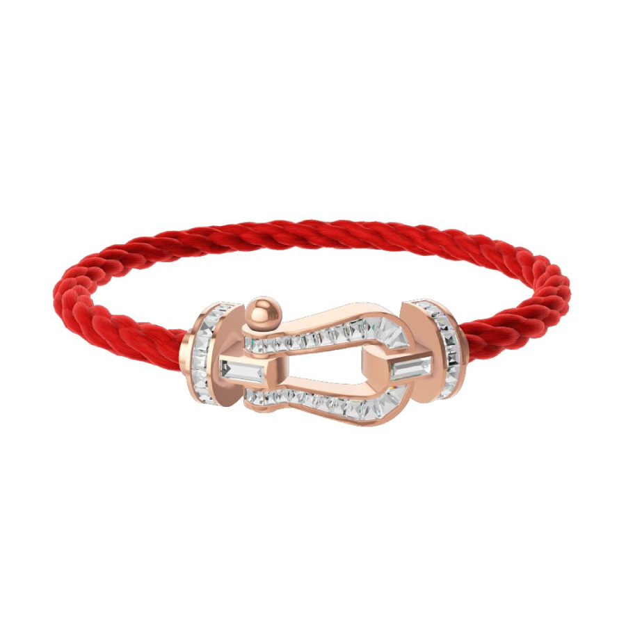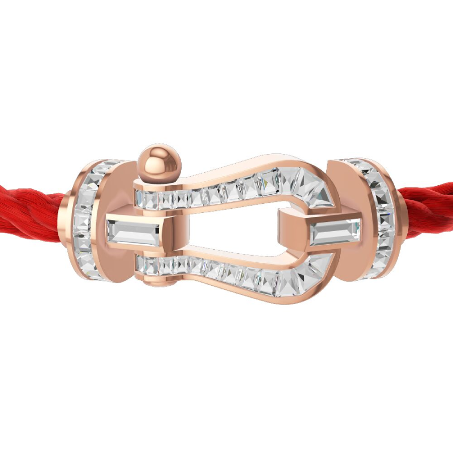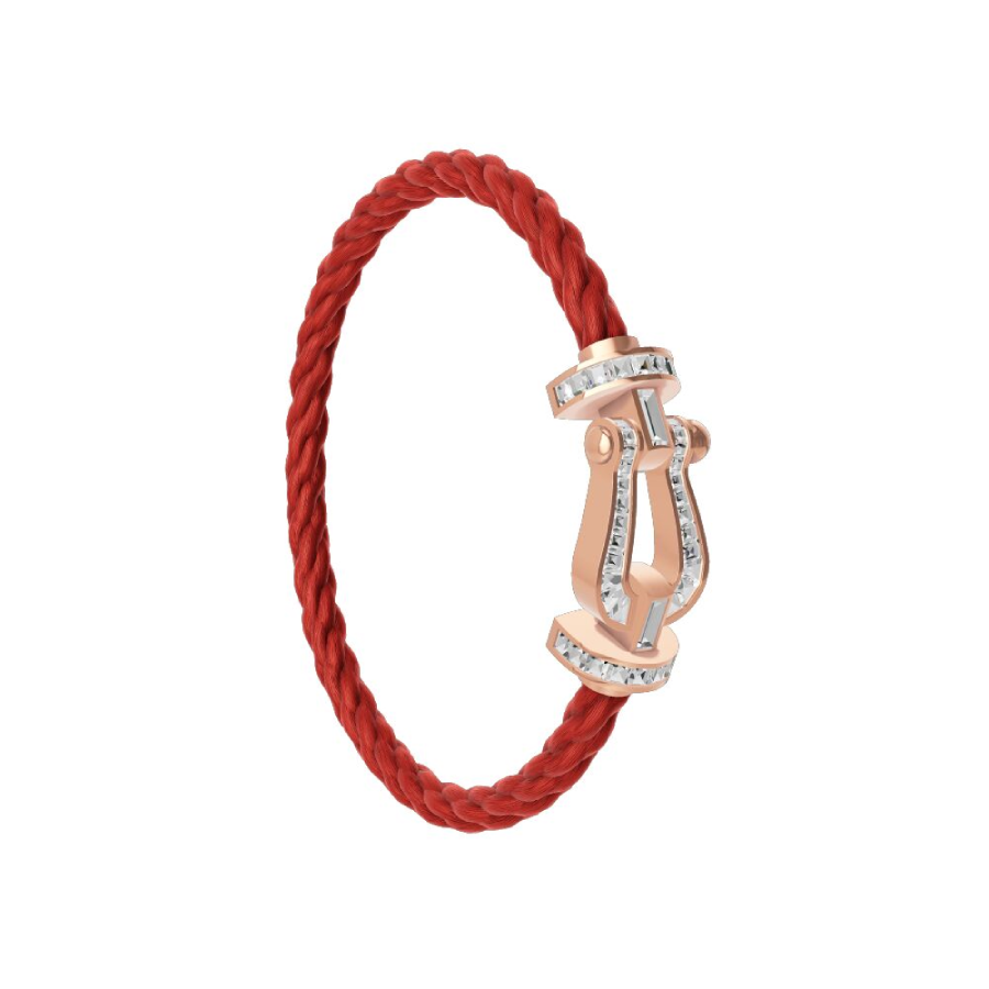 Cordino modello grande in nylon rosso con estremità in oro rosa.