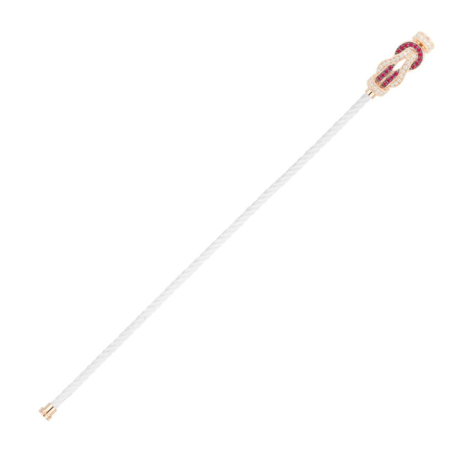 Cordino modello medio in nylon bianco con estremità in oro rosa.
