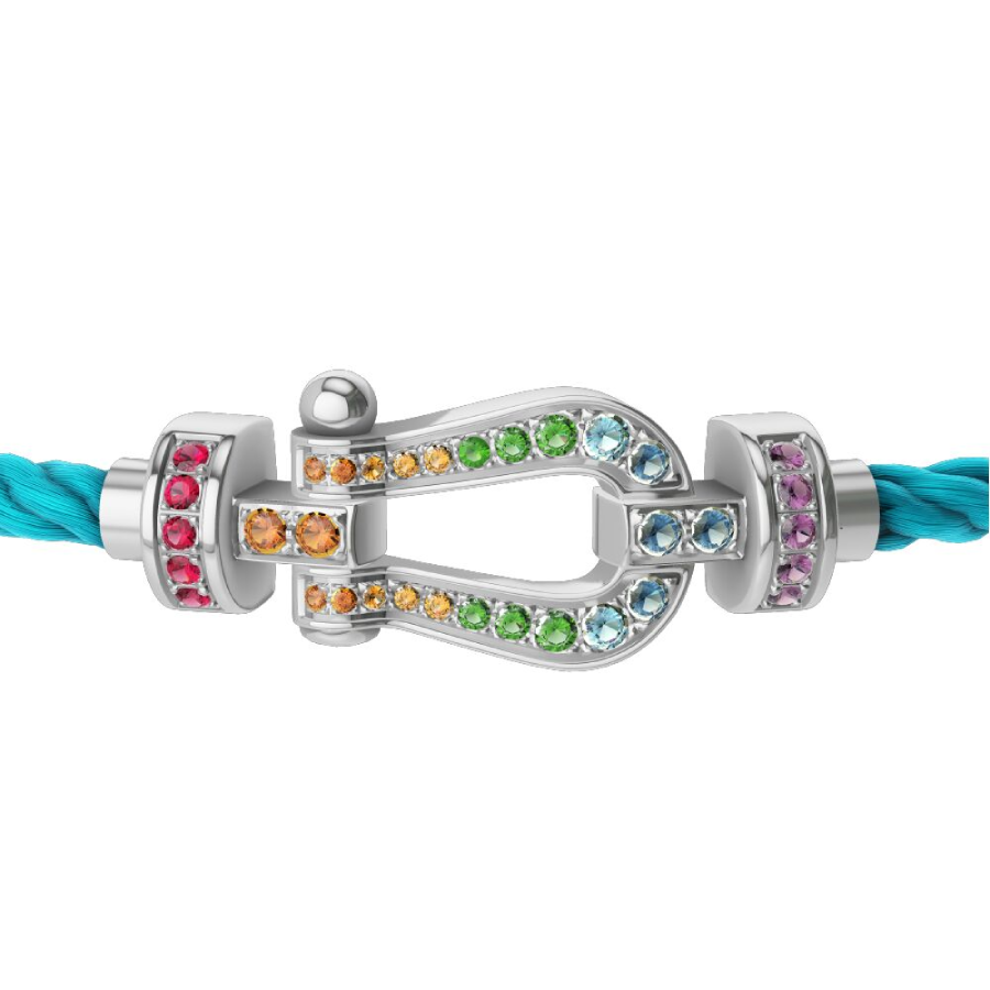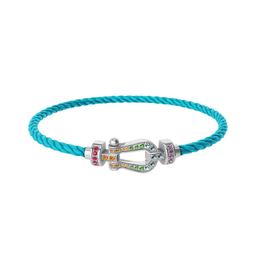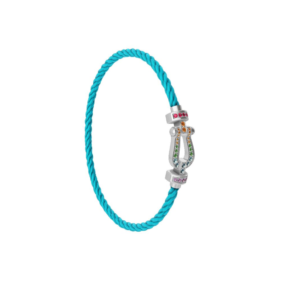 Cordino modello medio in nylon turchese con estremità in oro bianco.