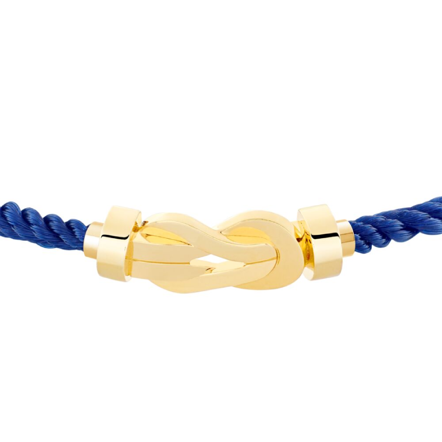 Cordino modello medio in nylon blu indigo con estremità in oro giallo.