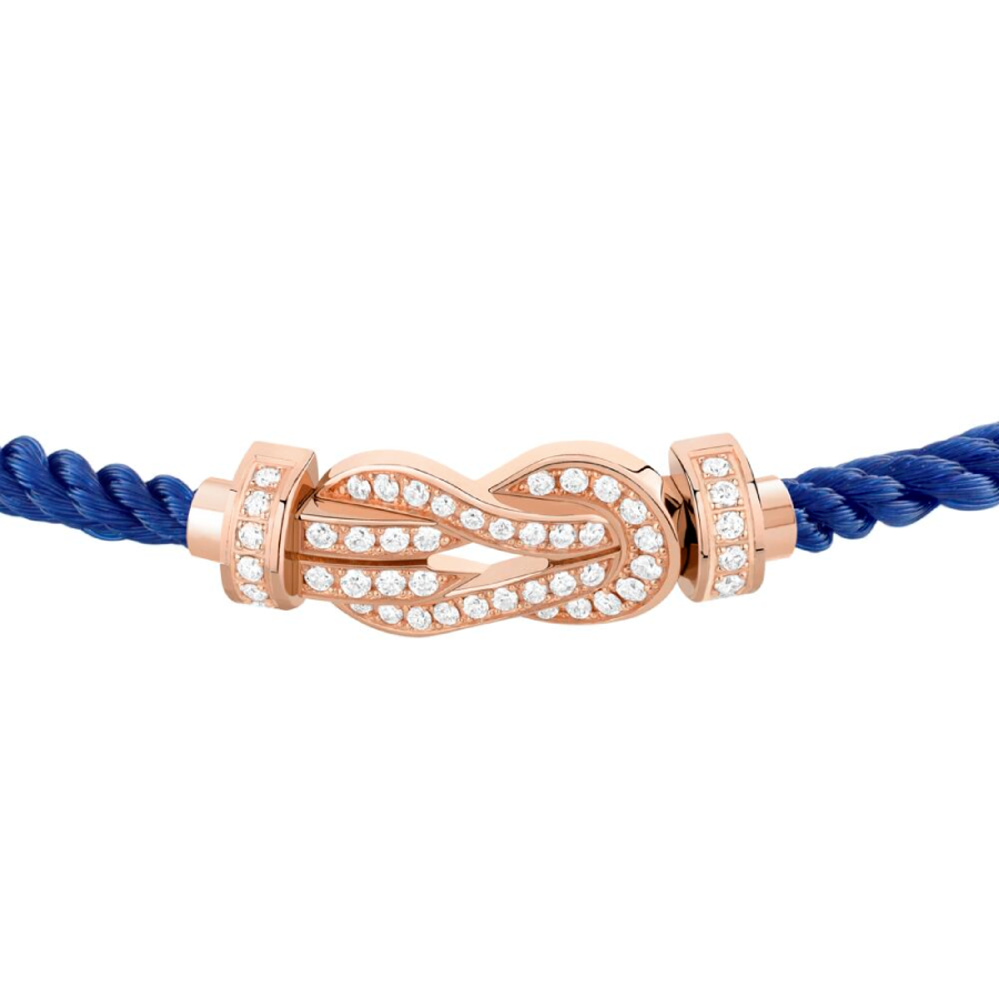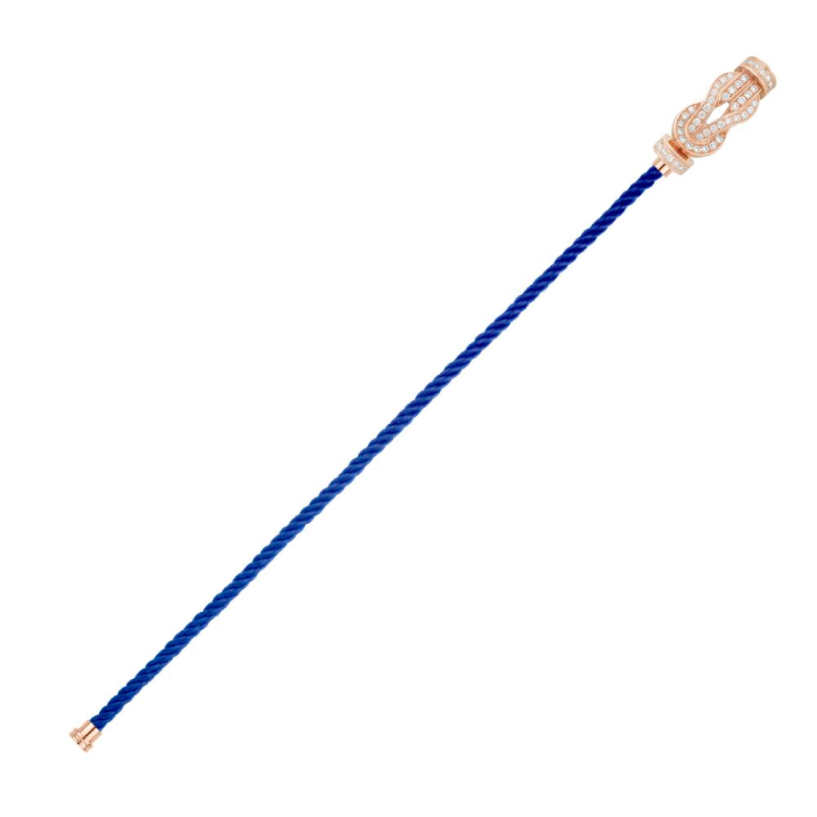 Cordino modello medio in nylon blu indigo con estremità in oro rosa.