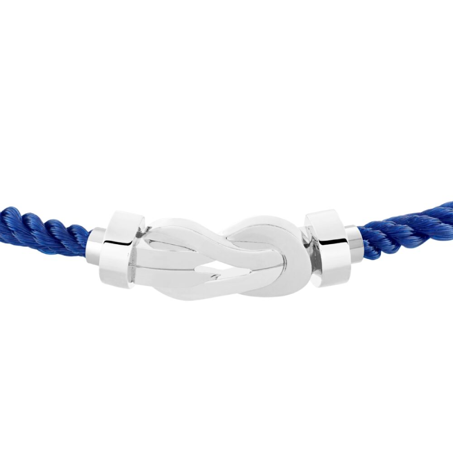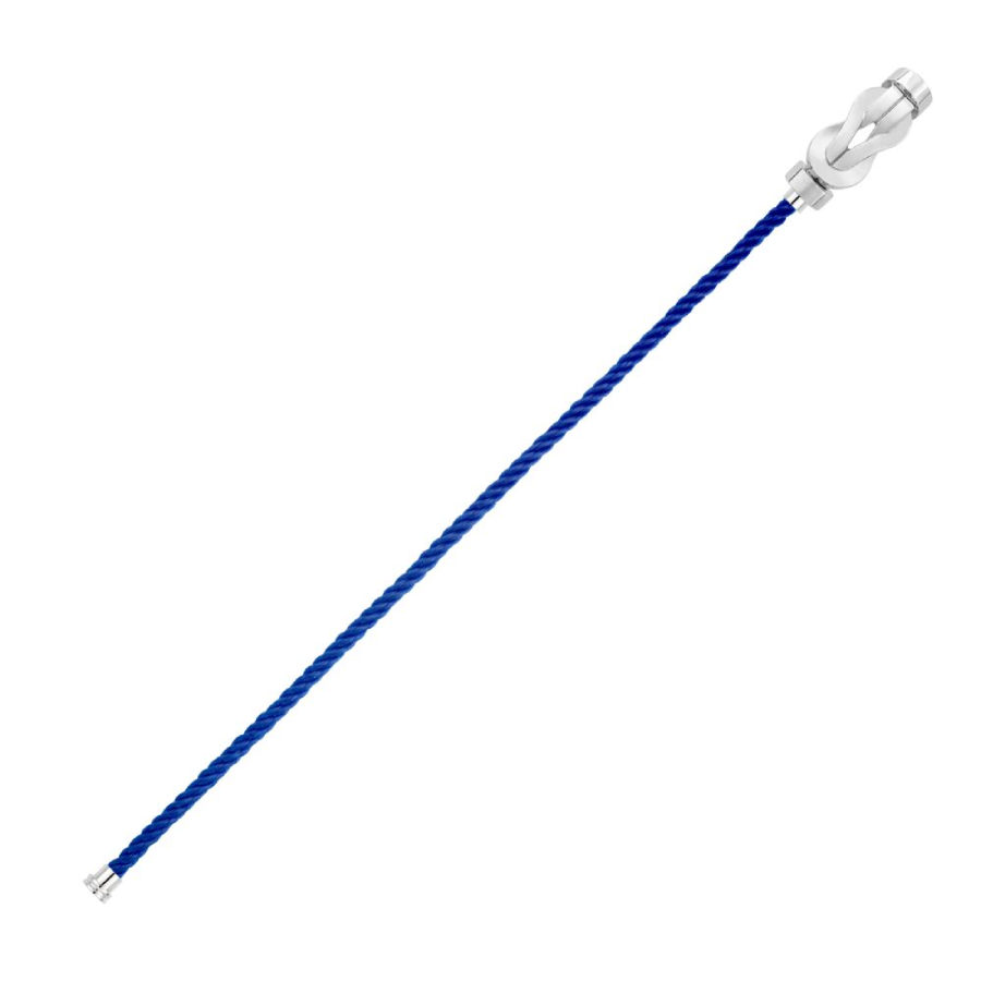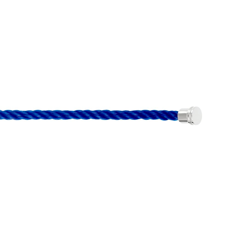 Cordino modello medio in nylon blu indigo con estremità in oro bianco.