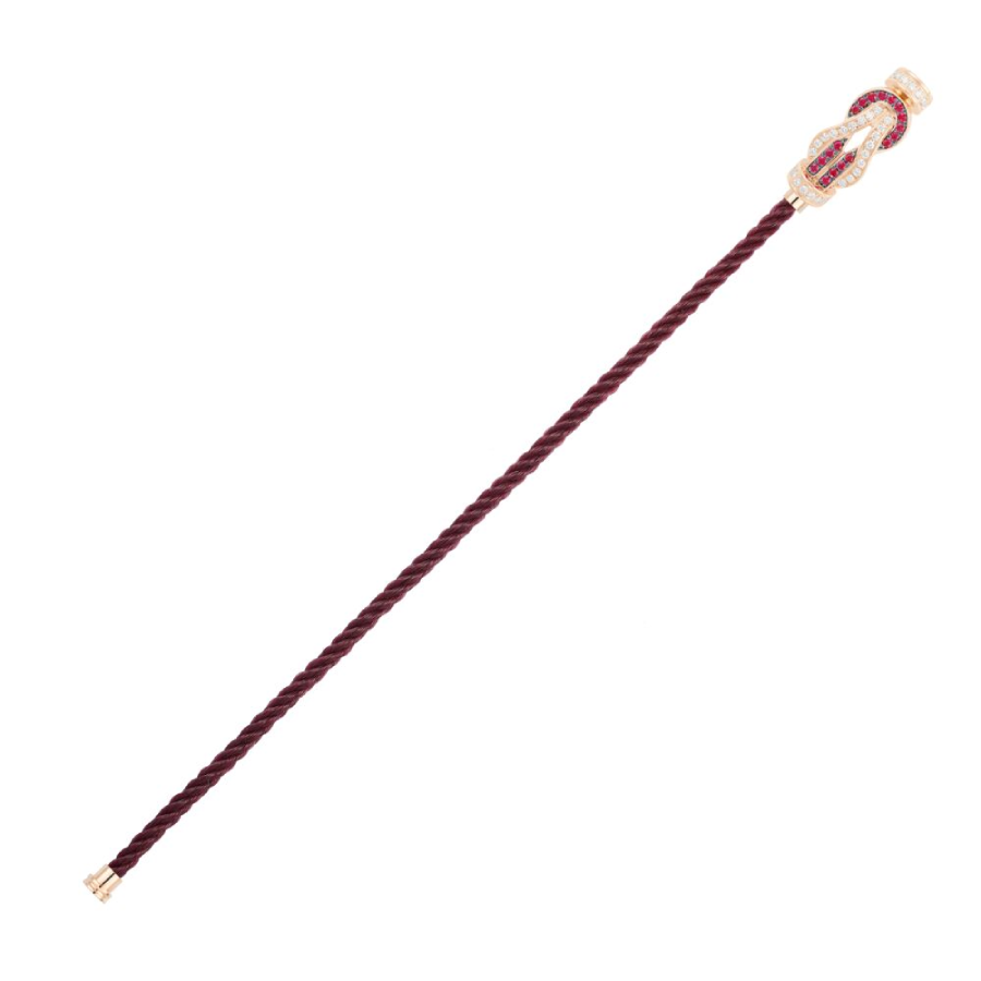 Cordino modello medio in nylon granato con estremità in oro rosa.