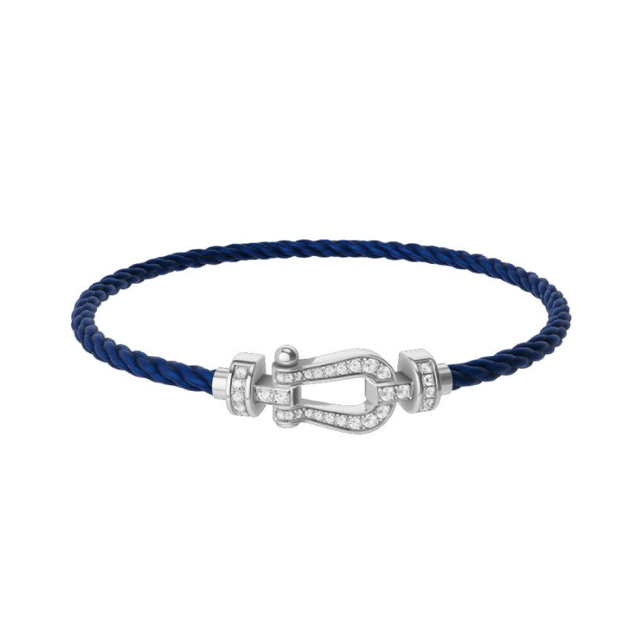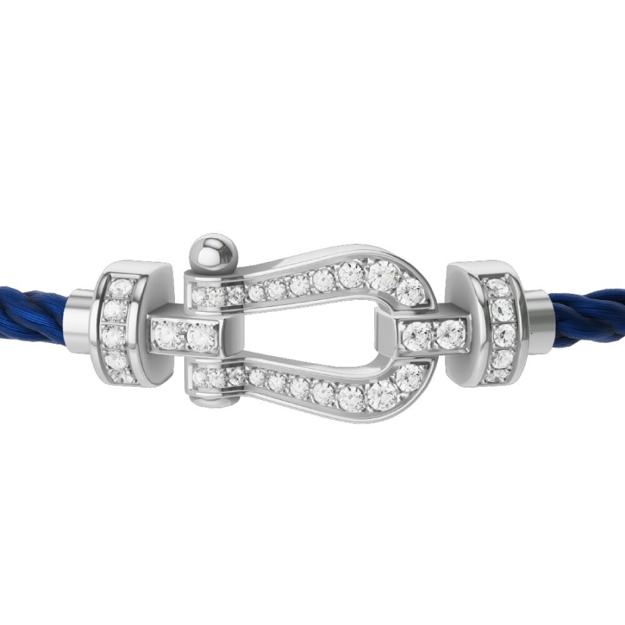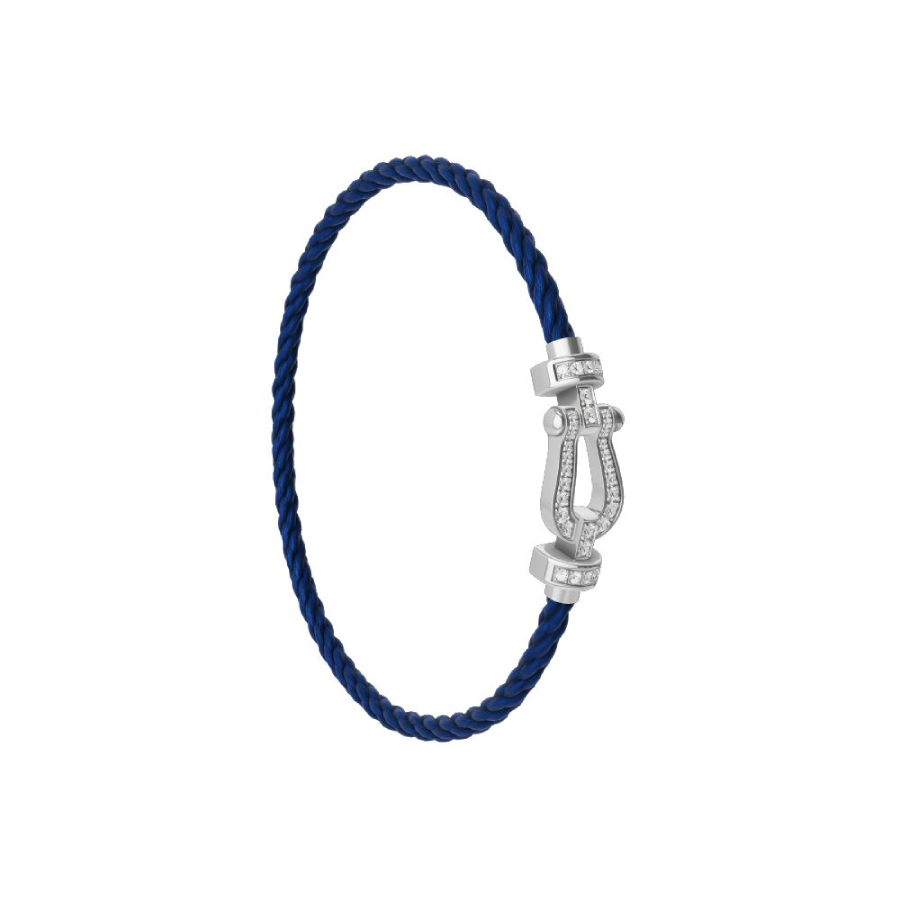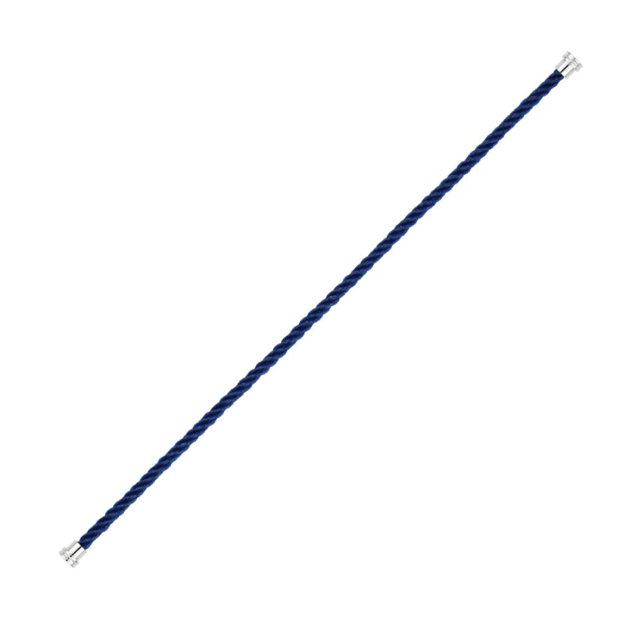 Cordino modello medio in nylon blu navy con estremità in oro bianco.