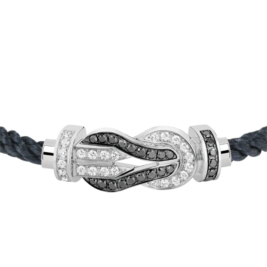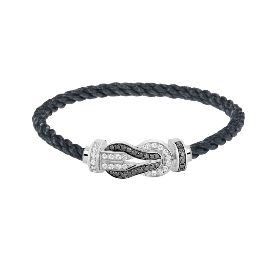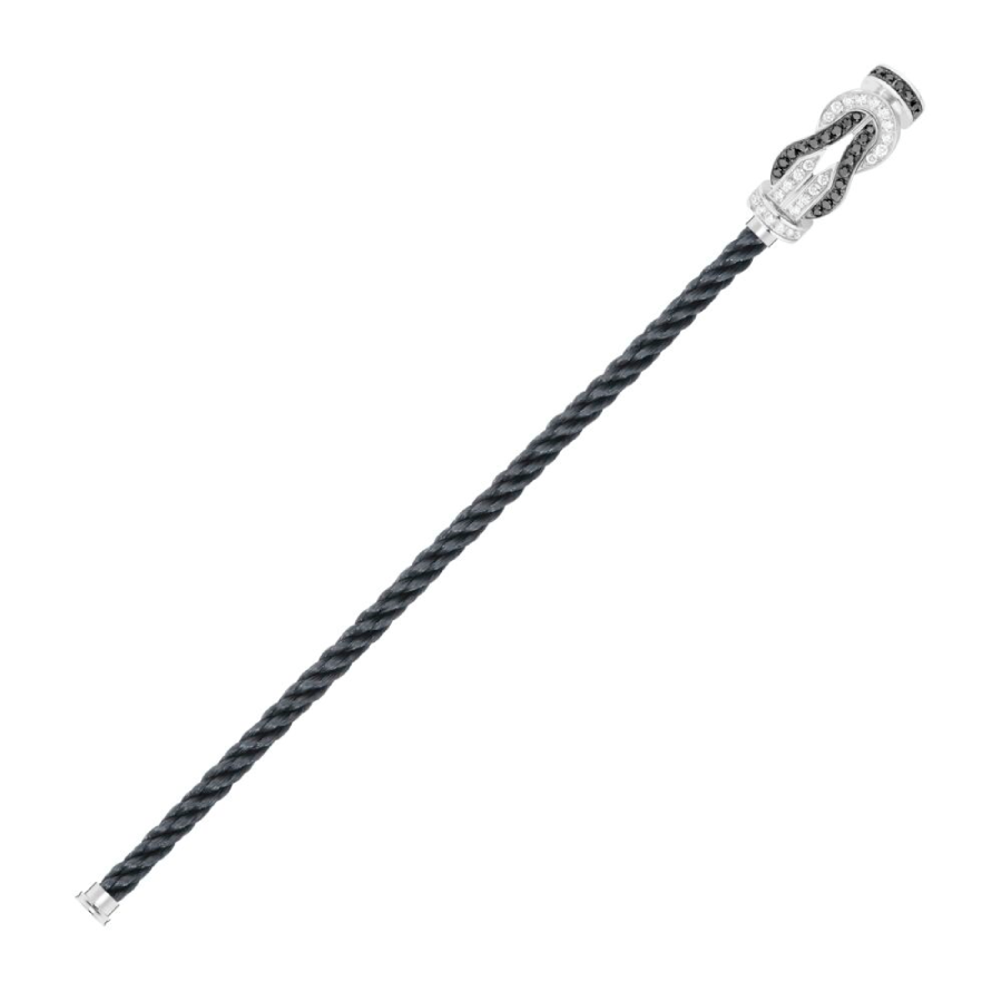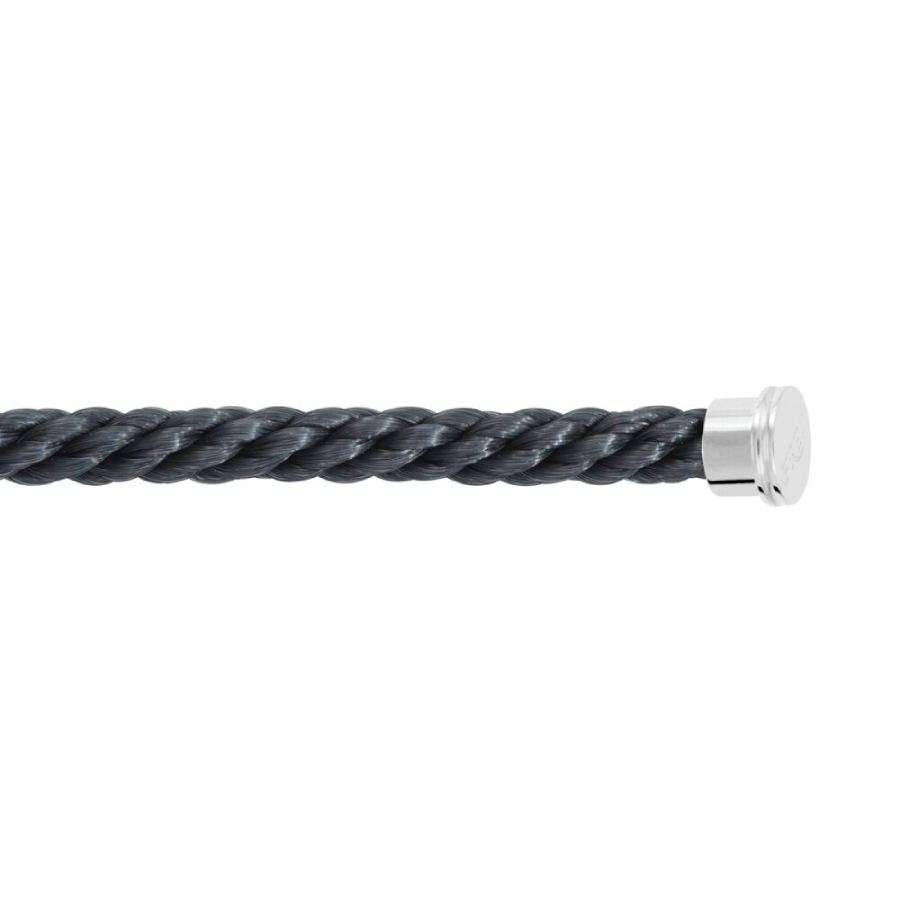 Cordino modello grande in nylon grigio scuro con estremità in oro bianco.