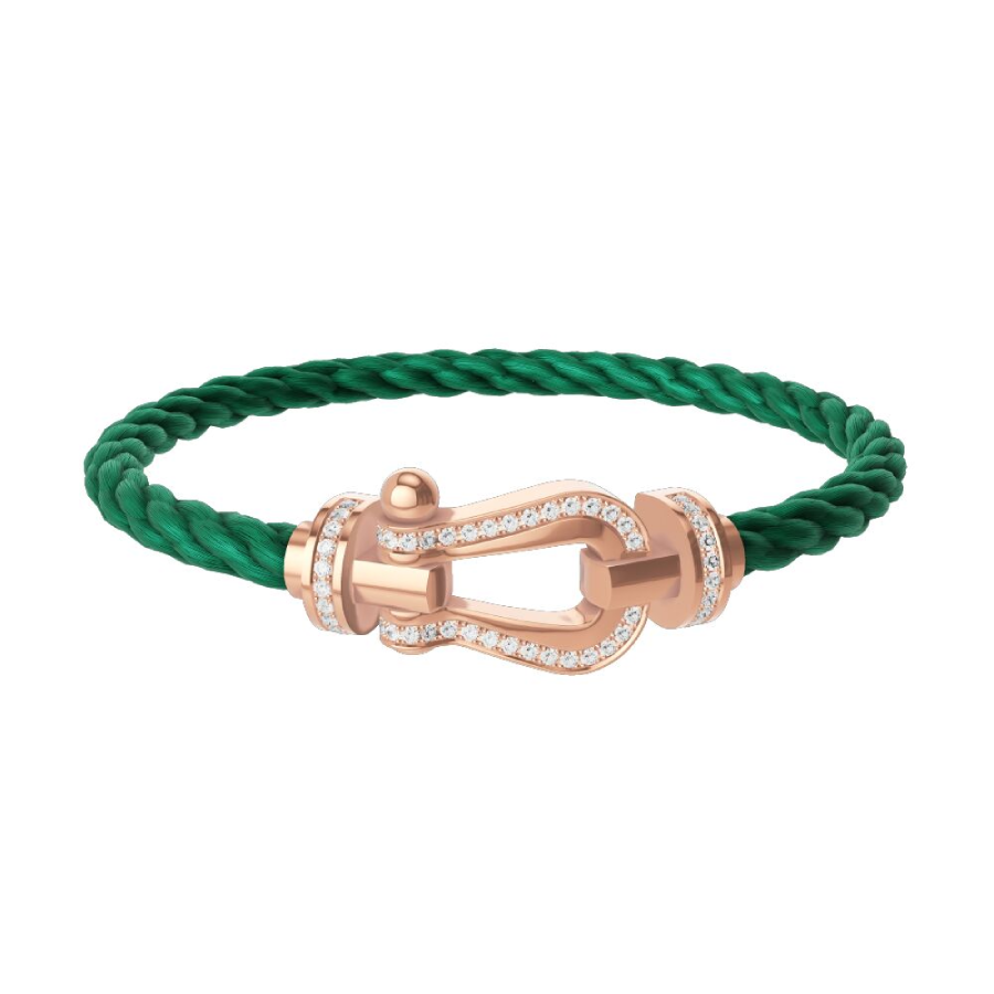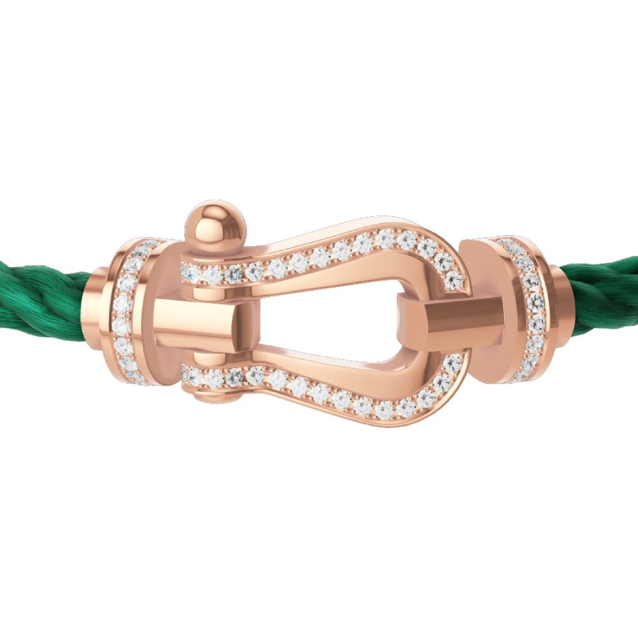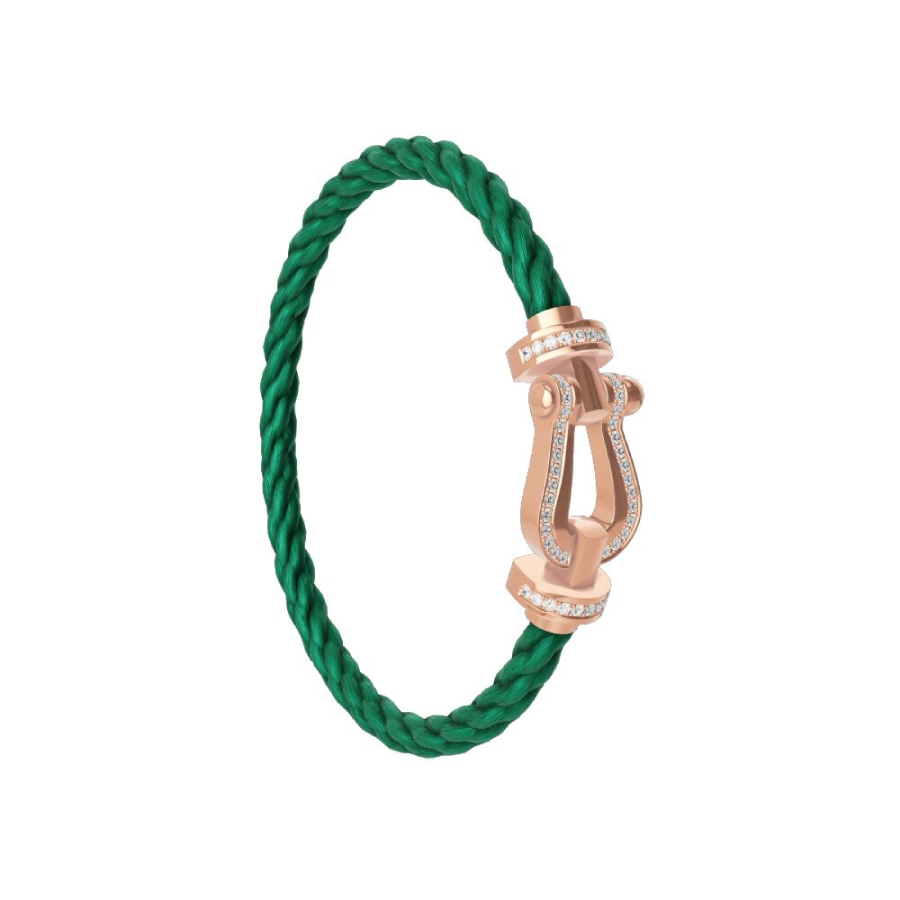 Cordino modello grande in nylon verde smeraldo con estremità in oro rosa.