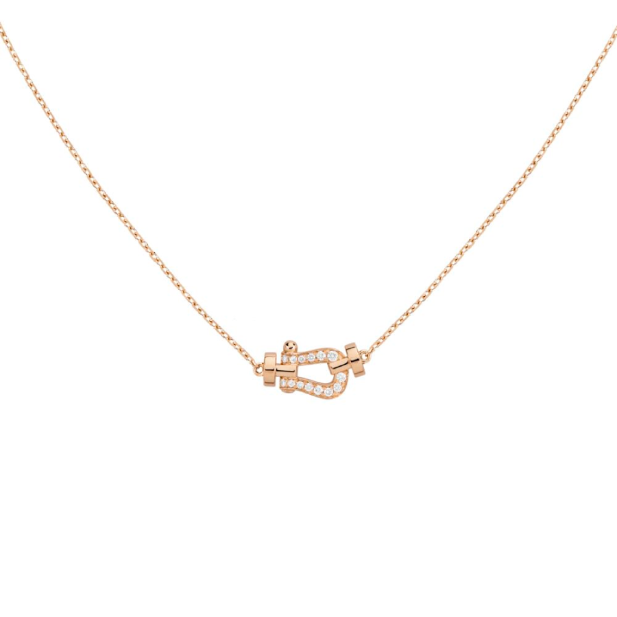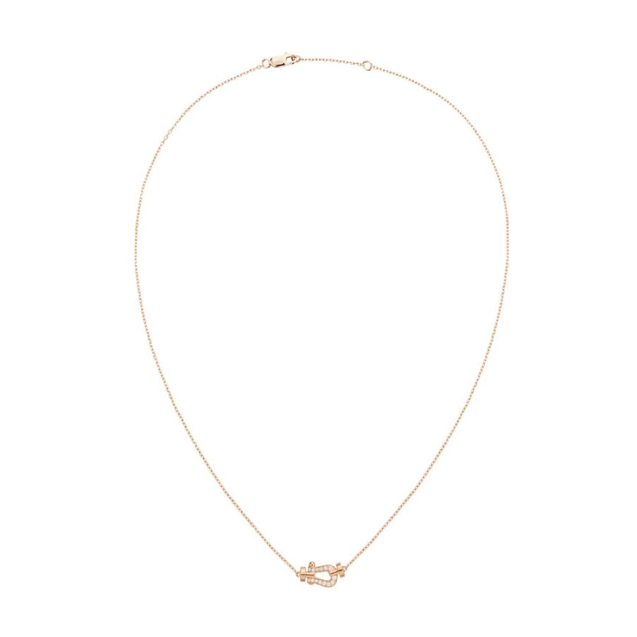 Collana modello piccolo in oro rosa con 14 diamanti bianchi taglio brillante.