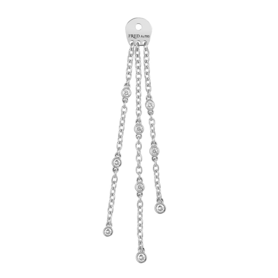 Orecchino singolo misura media in oro bianco con 9 diamanti bianchi taglio brillante.