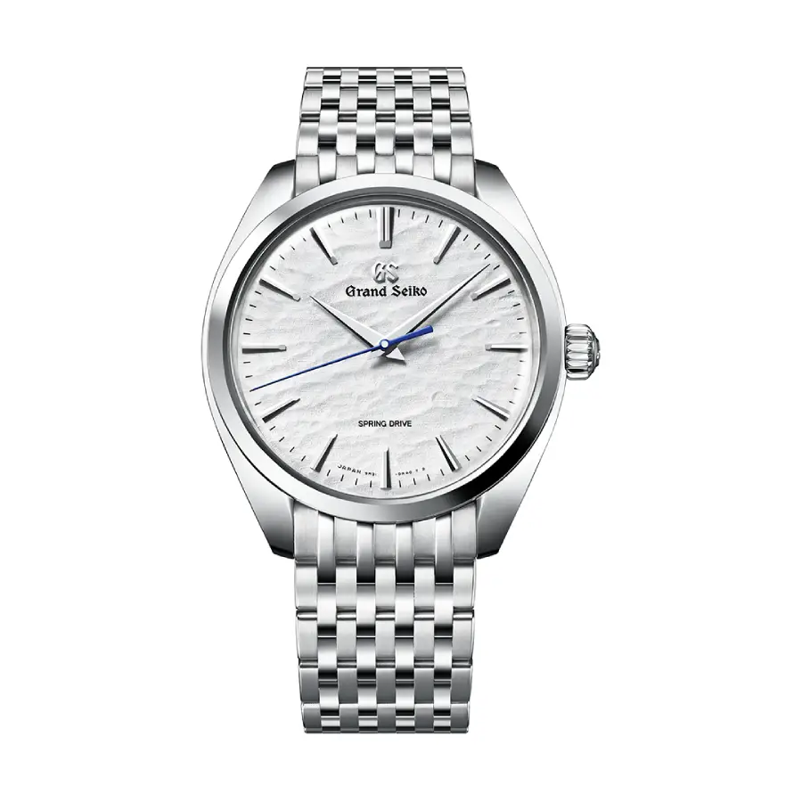 Durante la maggior parte degli inverni, l’acqua del lago Suwa si ghiaccia e crea una cresta ghiacciata che lo attraversa da una parte all’altra. Nella tradizione, questo particolare effetto viene chiamato “Omiwatari”, ovvero il luogo in cui gli dei camminano sul ghiaccio. l quadrante ha il colore, la sensazione e la consistenza del ghiaccio innevato del lago Suwa ed è in tonalità argento. Il bracciale ha una struttura a nove maglie che assicura una vestibilità salda e confortevole al polso.