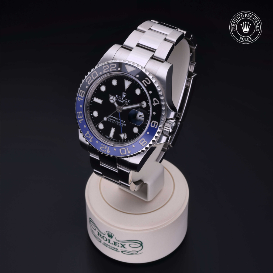 Presentato nel 1982, l’Oyster Perpetual GMT-Master II presenta l’emblematico disco della lunetta bicolore, oggi realizzato in ceramica ad alta tecnologia, e indica simultaneamente l’ora di due fusi orari. È il diretto discendente del GMT‑Master originale lanciato nel 1955, che è stato rapidamente adottato dai piloti transatlantici come ausilio alla navigazione.